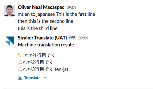 Direct Machine Translation (MT) in Straker Translate App for Slack