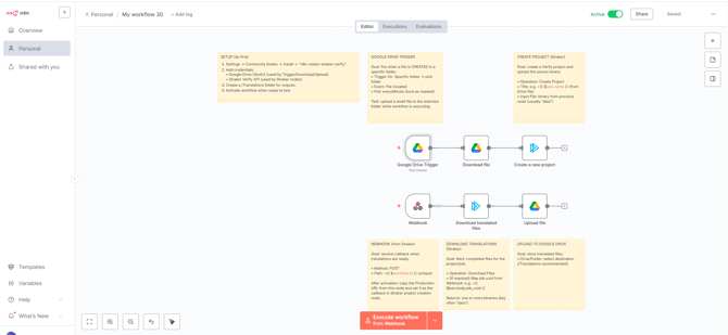Get n8n: If you haven't already, set up your free trial with n8n at https://n8n.io/. Make sure you're using the latest stable version for full compatibility with the Straker Verify node.